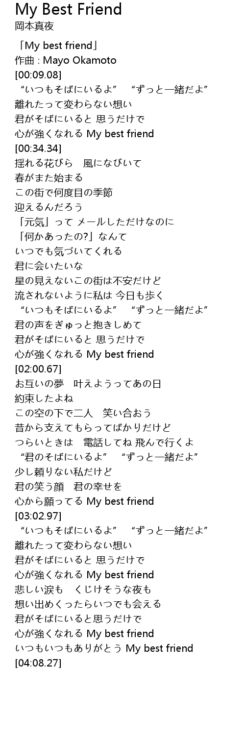 | [03:59.94] | いつもいつもありがとう My best friend |