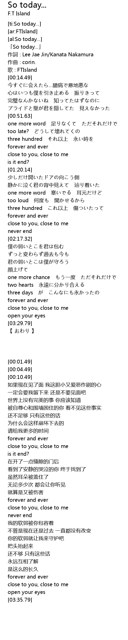 | [00:10.49] | gē FTIsland |