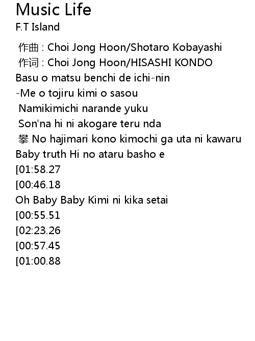 | [00:01.00] | zuò cí : Choi Jong Hoon HISASHI KONDO |