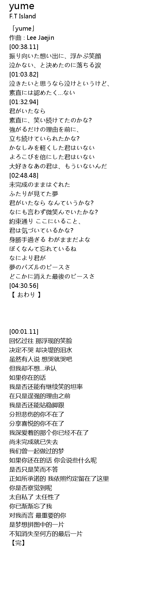 | [00:01.11] | 「yume」 |
