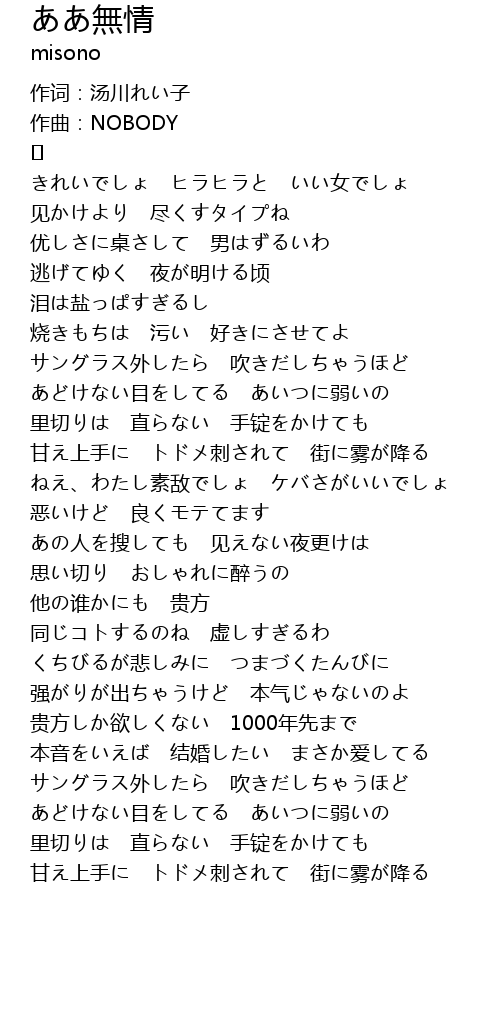 | 甘え上手に トドメ刺されて 街に雾が降る |