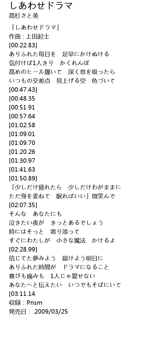 | [03:37.29][00:51.91] | 幸せドラマ 見つけられたら |