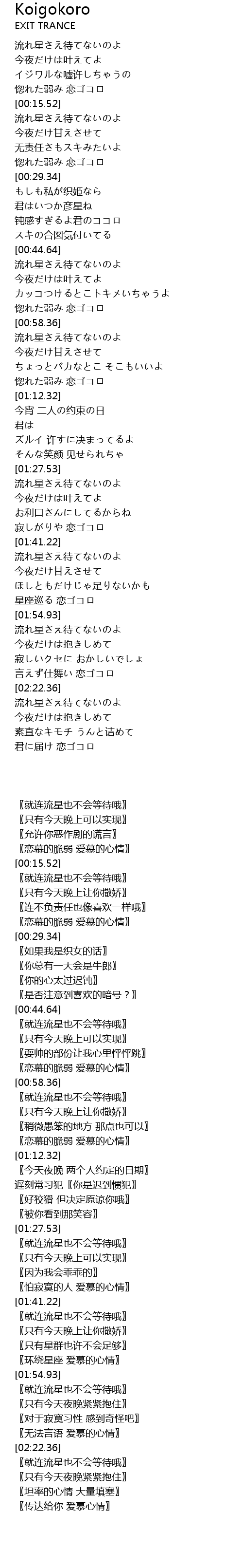 | [01:41.59] | 流れ星さえ待てないのよ |