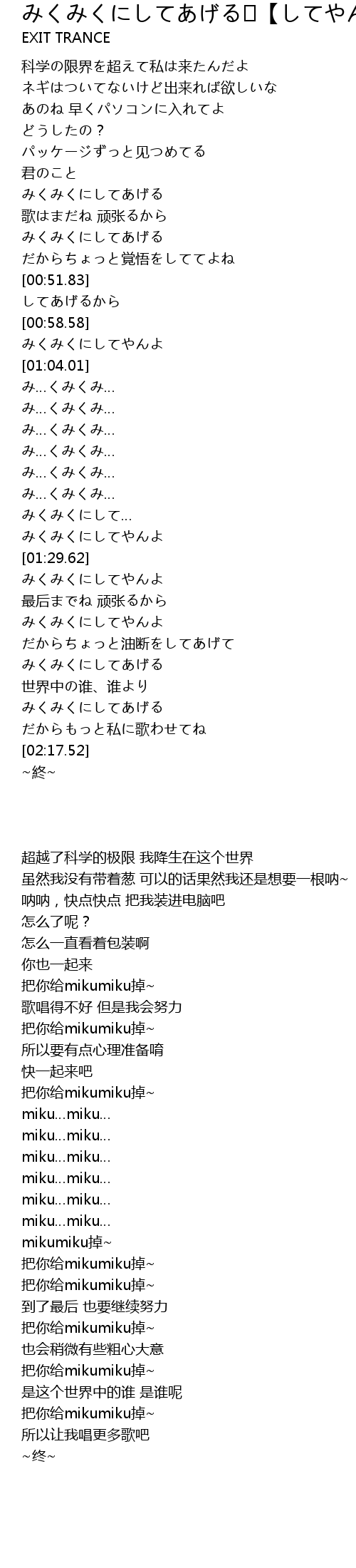 | [00:42.64] | みくみくにしてあげる |