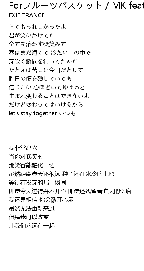 | Song | Forフルーツバスケット / MK feat.CAMRY |