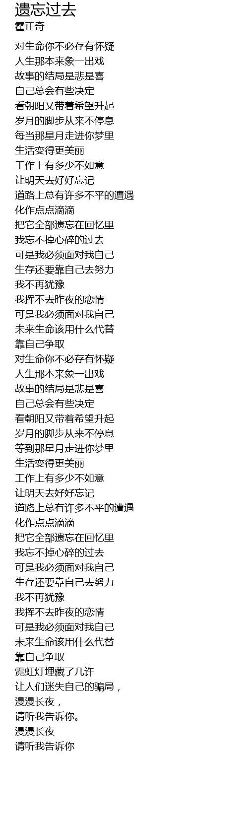 | [01:10.16] | 我忘不掉心碎的过去 |