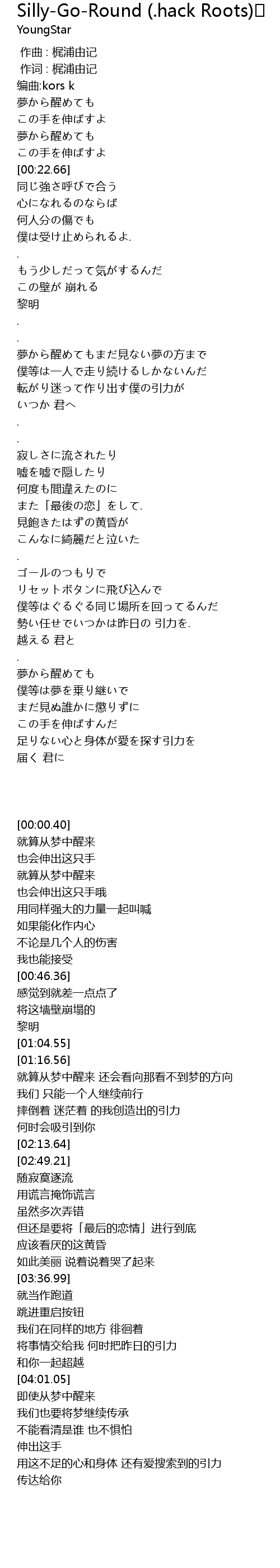 | Song | Silly-Go-Round (.hack Roots) |