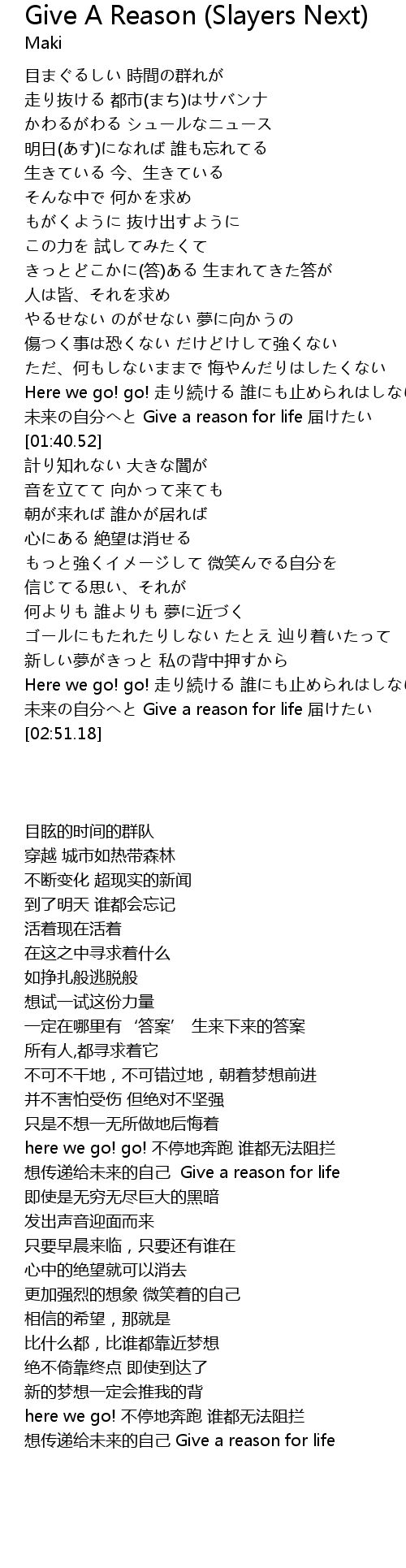 | [01:33.40] | wei lai zi fen Give a reason for life jie |