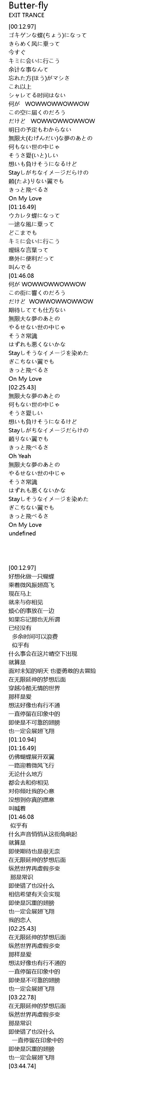 | [00:15.92] | ゴキゲンな蝶(ちょう)になって |