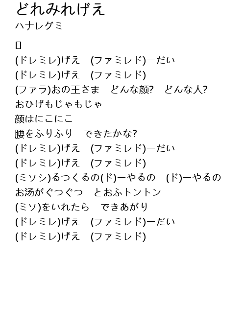 | (ドレミレ)げえ (ファミレド)ーだい | |