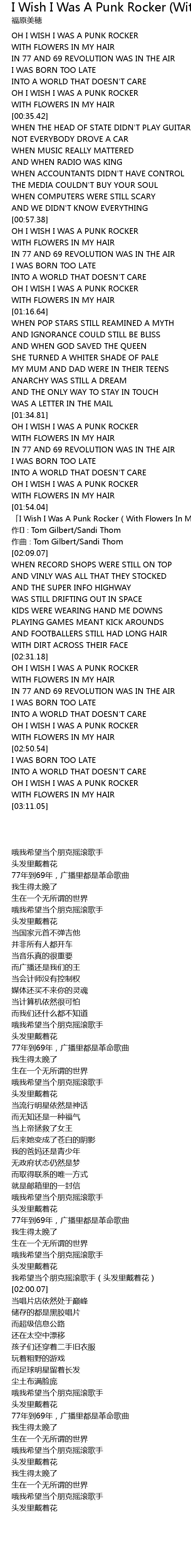 | [01:57.07] | 「I Wish I Was A Punk Rocker(With Flowers In My Hair)」 |