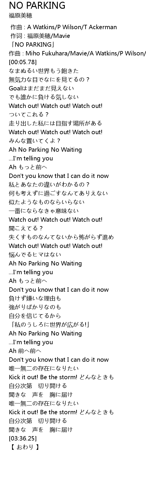 | [00:01.78] | 「NO PARKING」 |