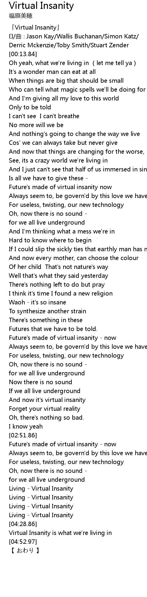 | [04:49.21] | Virtual Insanity is what we're living in |