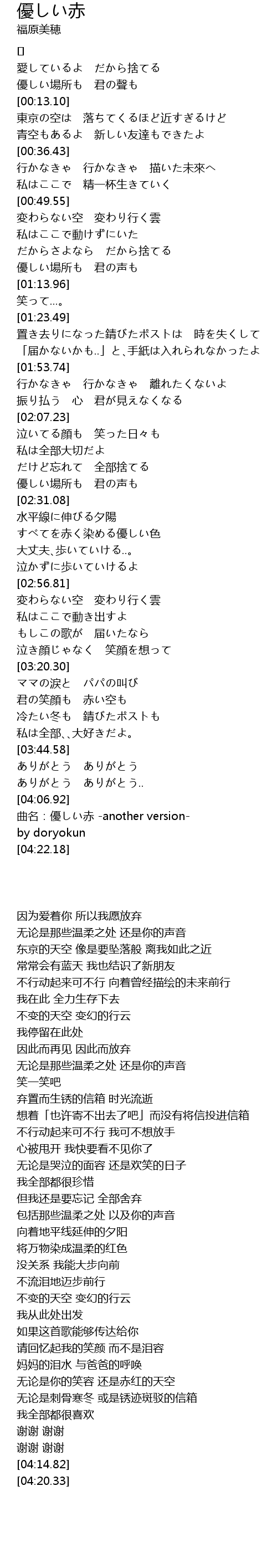 | [04:14.82] | 曲名:優しい赤 -another version- |