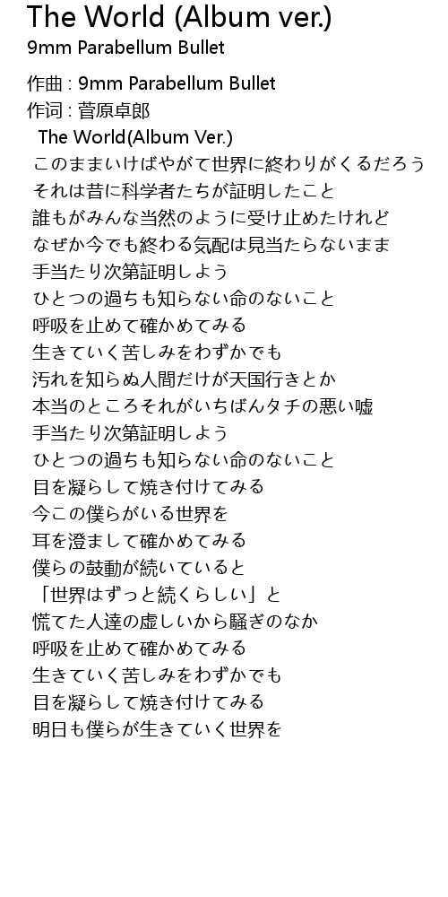 | zuò qǔ : 9mm Parabellum Bullet | |