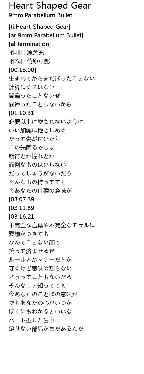 | [01:51.50][03:16.21] | 足りない部品はないのに |