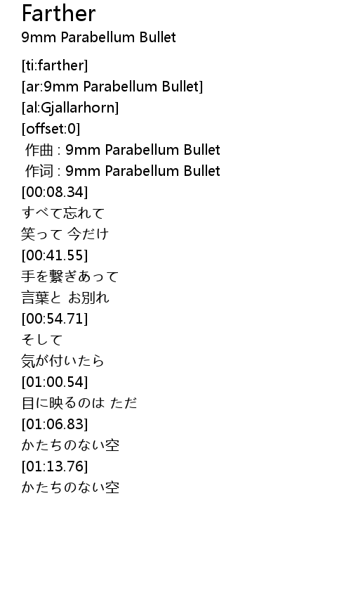 | [00:01.00] | 作词 : 9mm Parabellum Bullet |