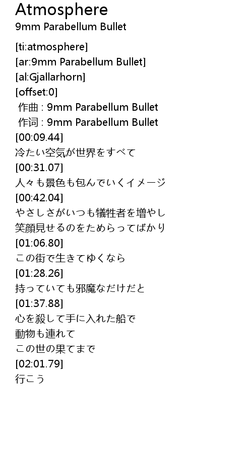 | [00:01.00] | 作词 : 9mm Parabellum Bullet |