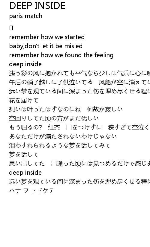 | Song | DEEP INSIDE |
