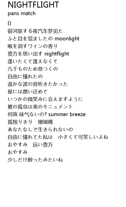 | 贵方を思い出す nightflight | |