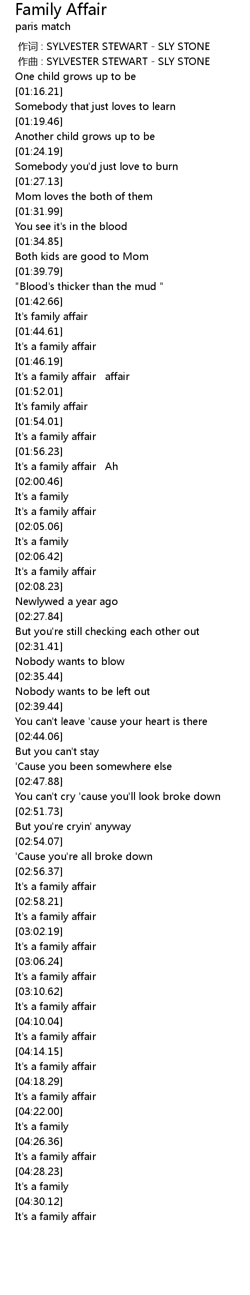 | [01:49.01] | It' s a family affair affair |