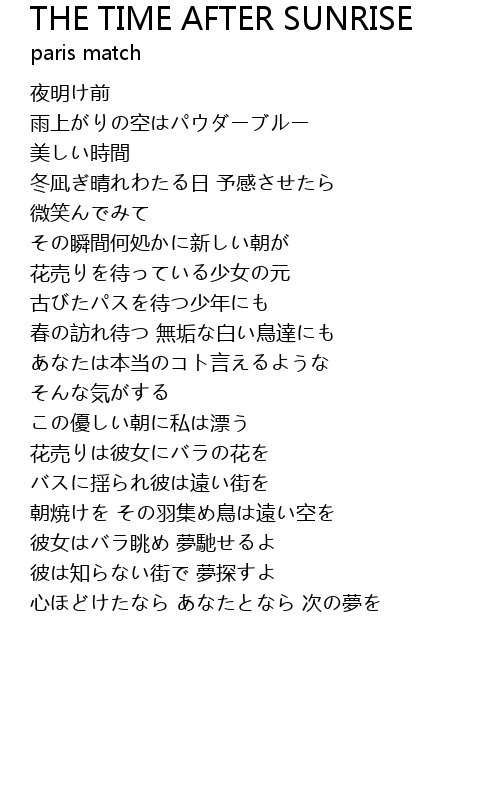 | Song | THE TIME AFTER SUNRISE |