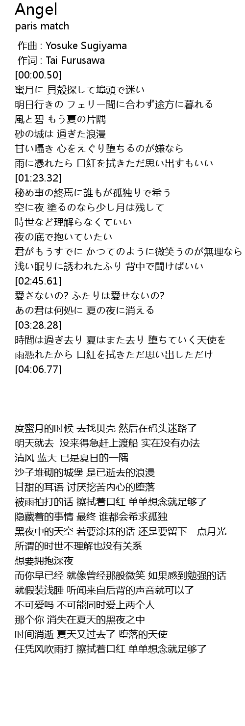 | [03:42.91] | 時間は過ぎ去り 夏はまた去り 堕ちていく天使を |