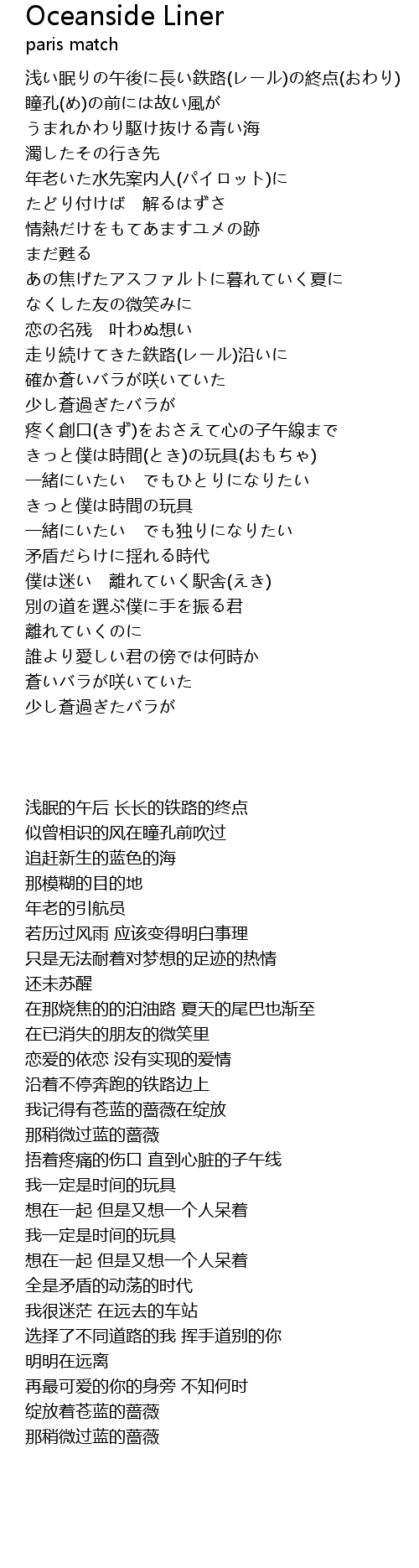 | [00:14.32] | 浅い眠りの午後に長い鉄路(レール)の終点(おわり) |