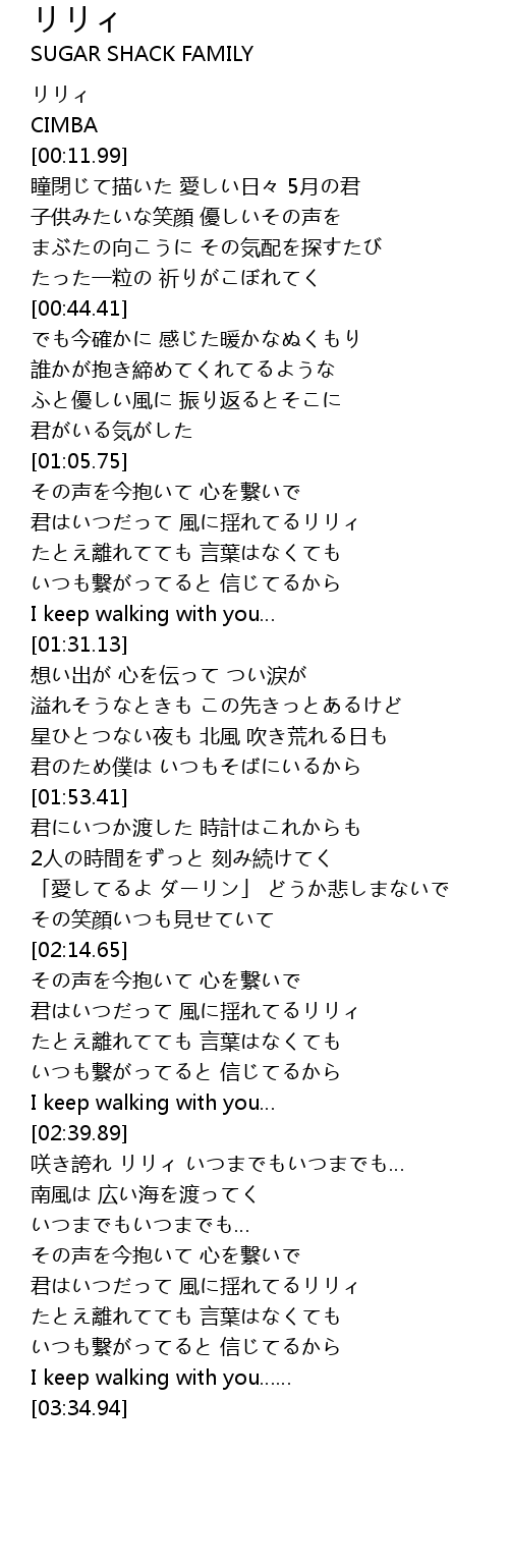 | [03:15.76] | 君はいつだって 風に揺れてるリリィ |