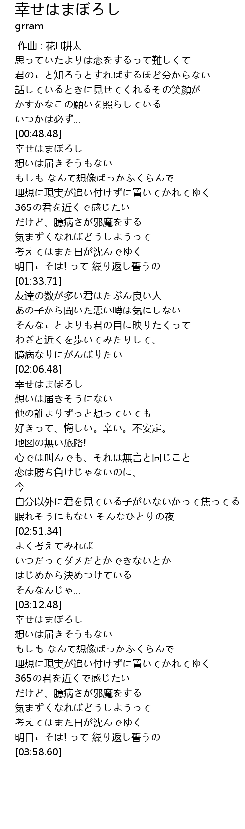 | [00:19.83] | 思っていたよりは恋をするって難しくて |