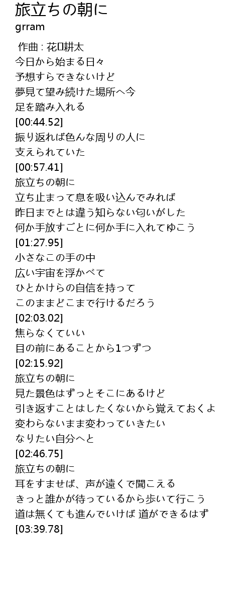 | [00:57.73] | 旅立ちの朝に |