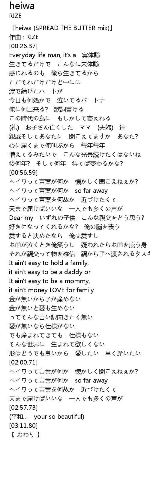 | [00:01.37] | 「heiwa (SPREAD THE BUTTER mix)」 |