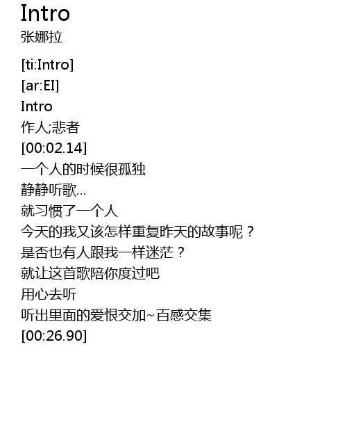| [00:23.12] | 听出里面的爱恨交加~百感交集 |