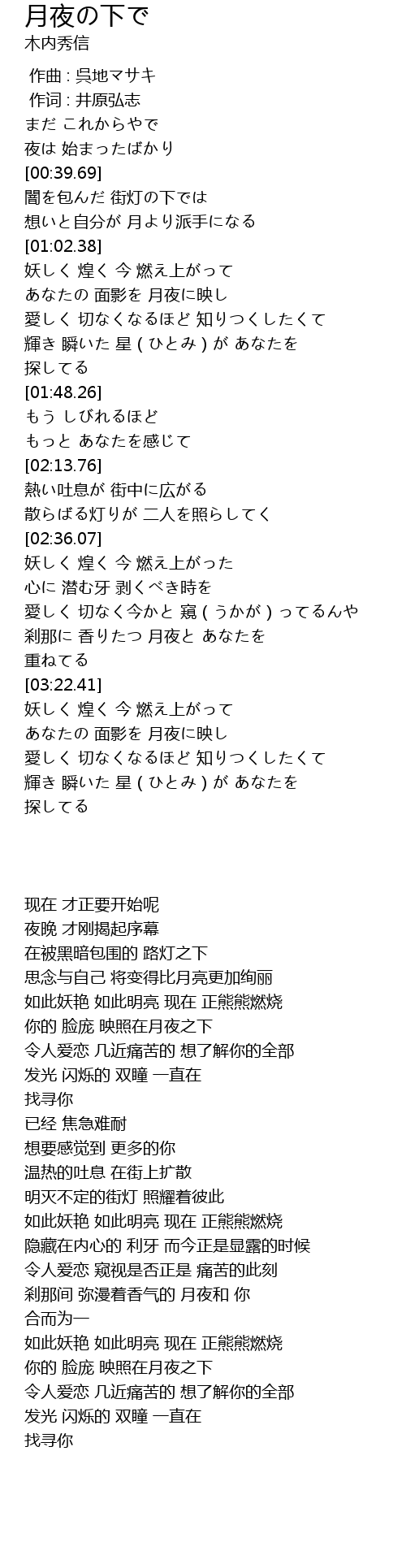 | [02:56.46] | 愛しく 切なく今かと 窺(うかが)ってるんや |