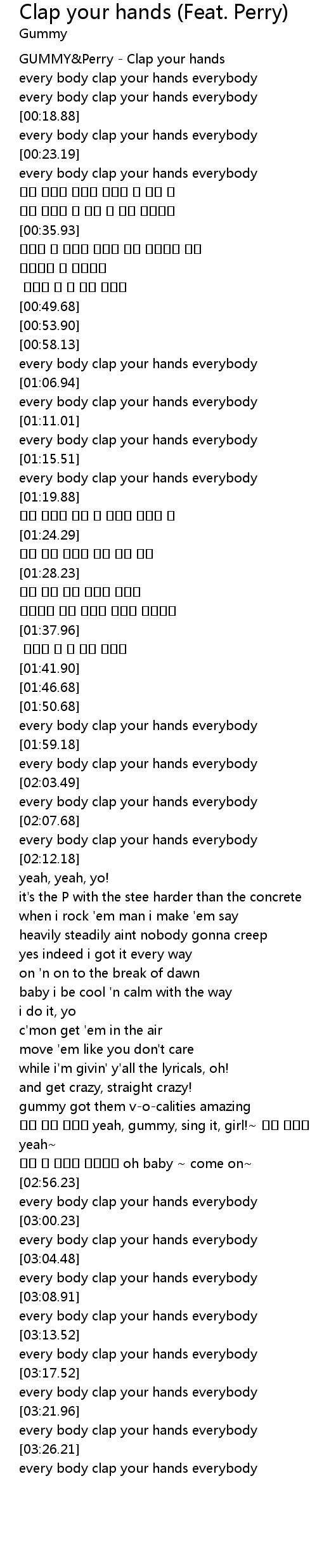 | [00:01.14] | GUMMY Perry Clap your hands |