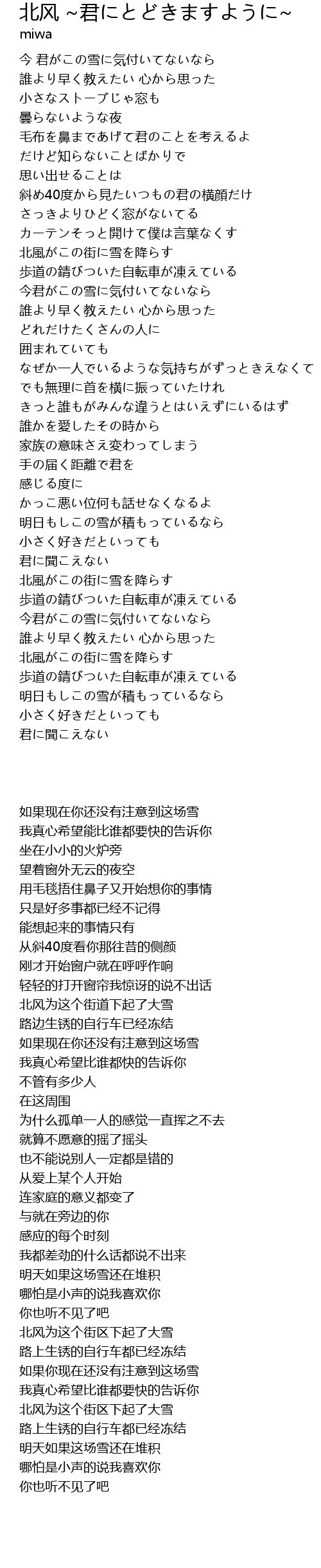 | [04:28.68] | 北風がこの街に雪を降らす |