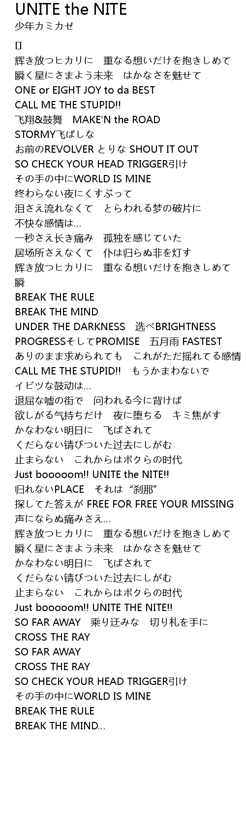 | 辉き放つヒカリに 重なる想いだけを抱きしめて | |