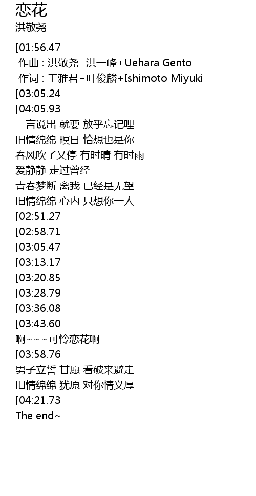 | [02:12.20] | a kě lián liàn huā a |