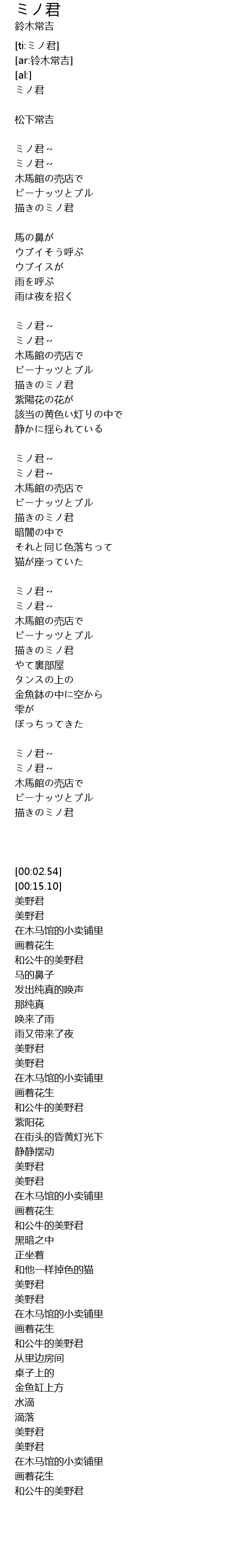 | [02:54.38] | ミノ君~ |