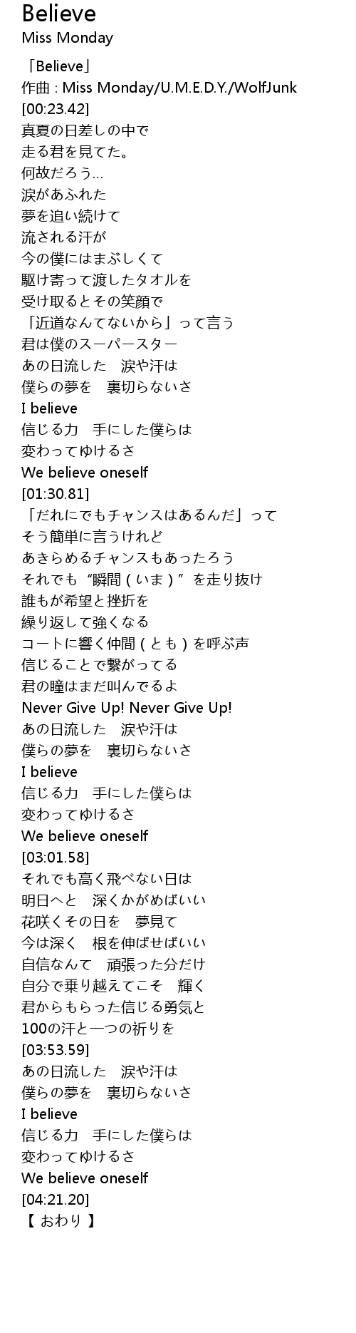 | [00:01.42] | 「Believe」 |