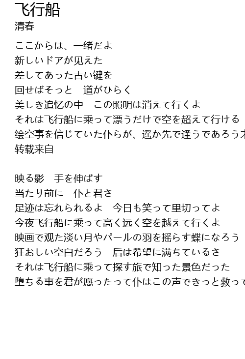 | 今夜飞行船に乘って高く远く空を越えて行くよ | |