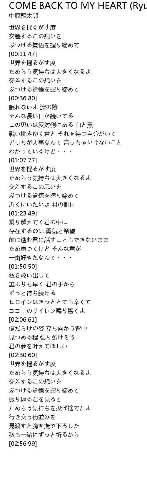 | [00:08.49] | ぶつける覚悟を握り締めて |