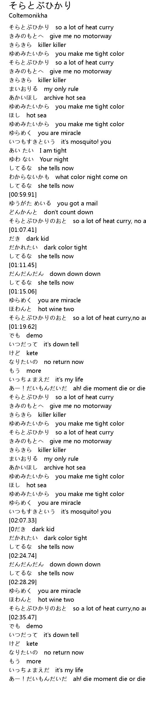 | [01:03.87] | そらとぶひかりのおと so a lot of heat curry, no auto |