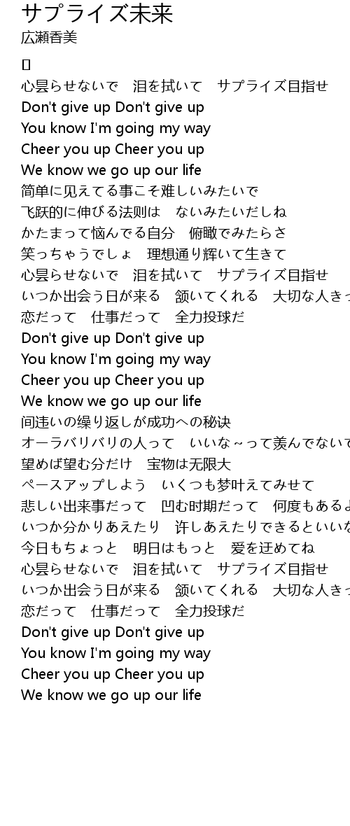 | 心昙らせないで 泪を拭いて サプライズ目指せ | |