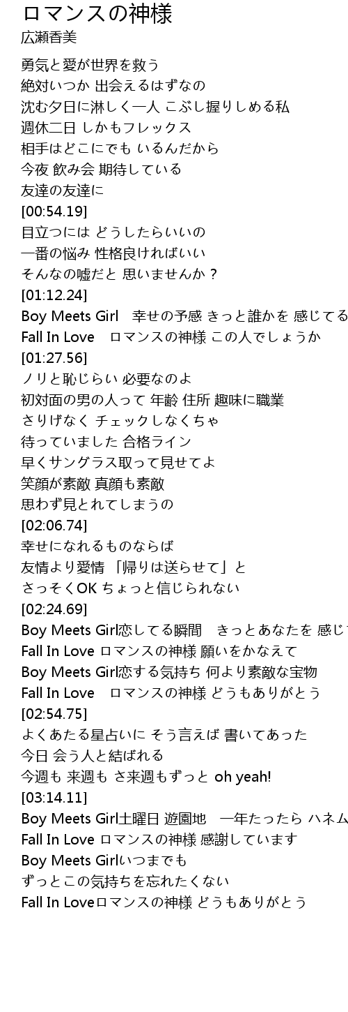 | [02:47.93] | Fall In Love ロマンスの神様 どうもありがとう |