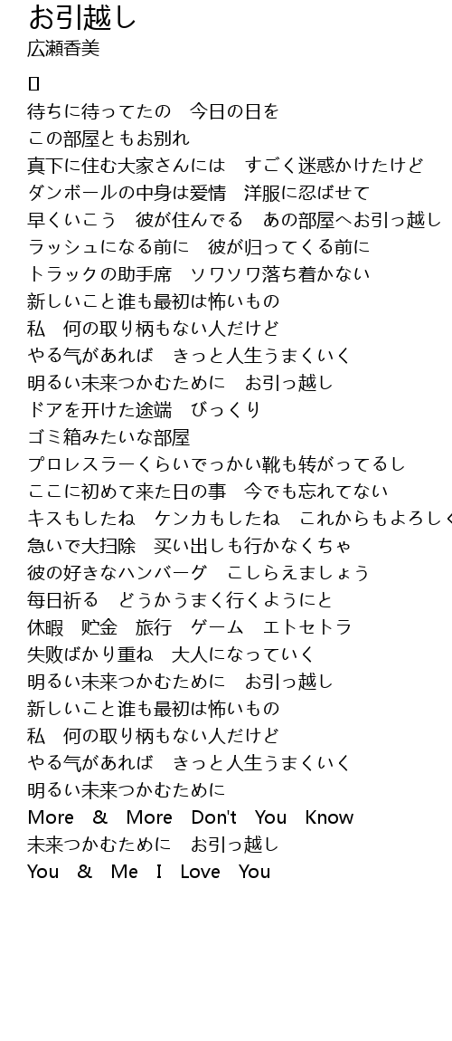 | 早くいこう 彼が住んでる あの部屋へお引っ越し | |