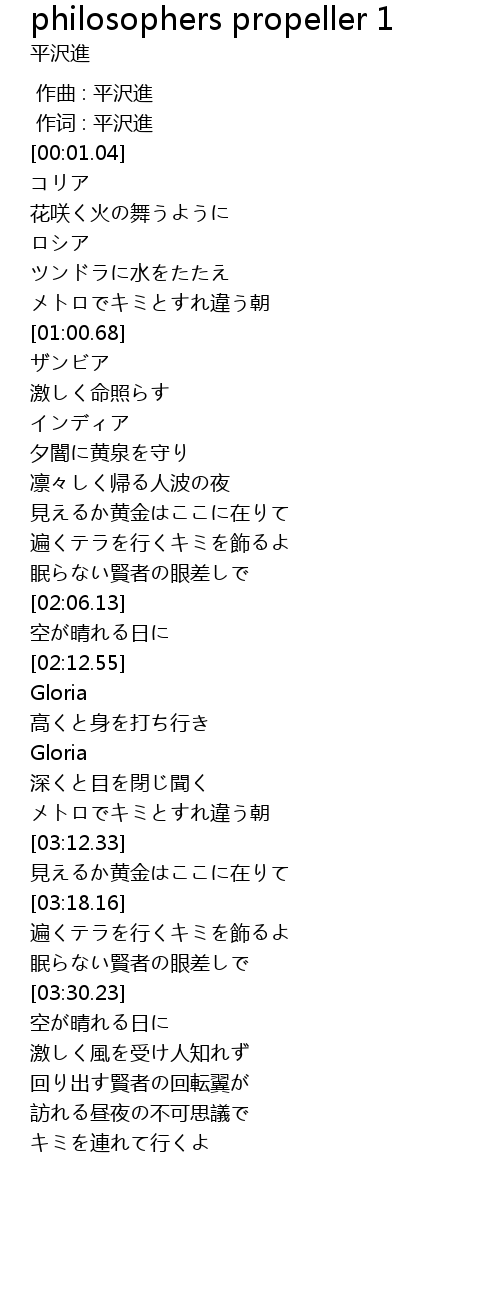 | [03:00.80] | メトロでキミとすれ違う朝 |