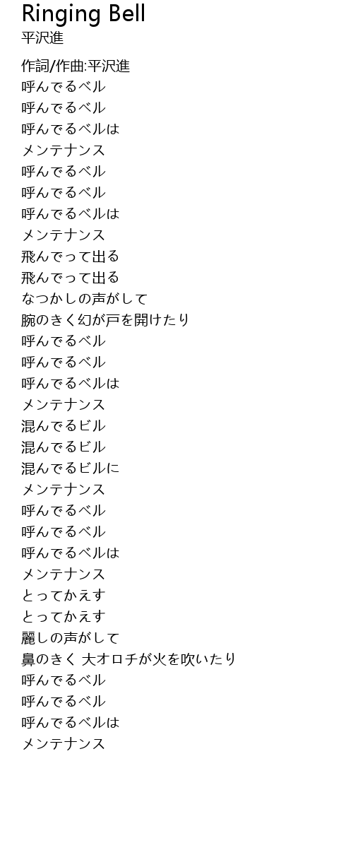 | [00:08.137] | 作詞/作曲:平沢進 |