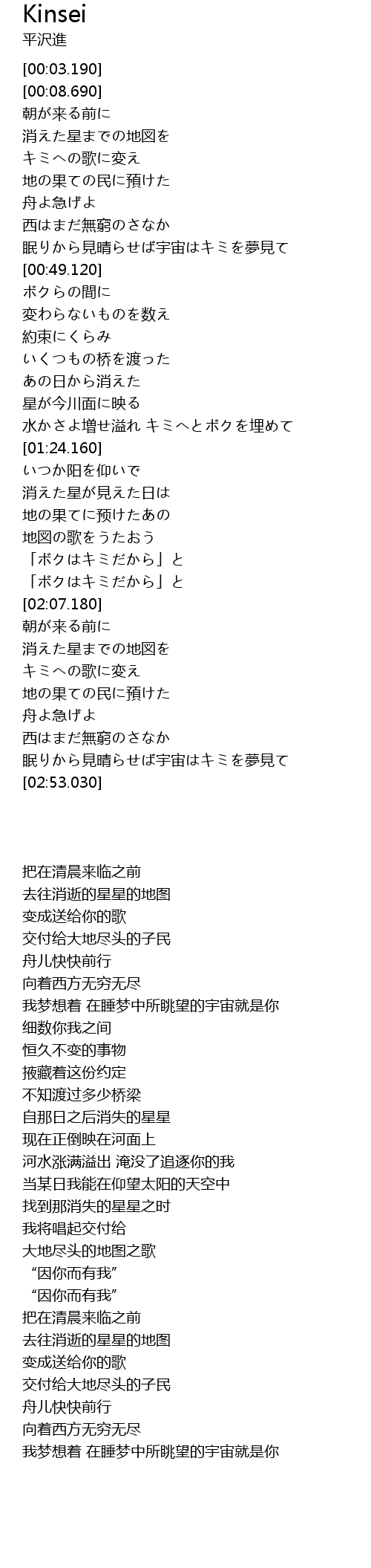 | [02:33.780] | 消えた星までの地図を |