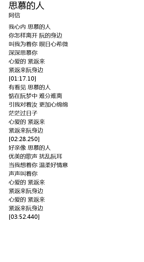 | [00:19.380] | wǒ xīn nèi sī mù de rén |
